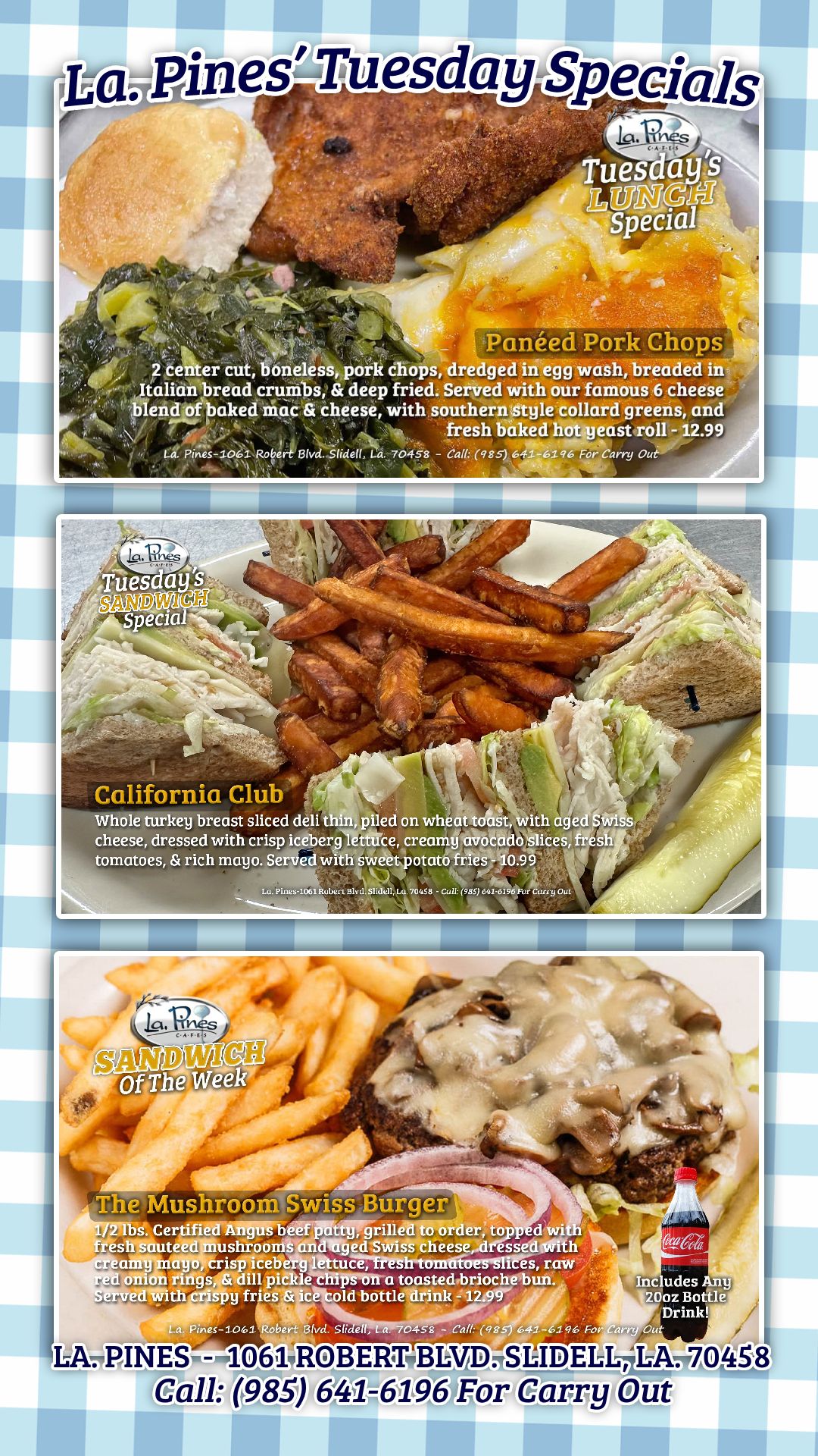 #LaPinesCafe #specials #yummy #tuesday #slidell #comfortfoodcomfortableprices