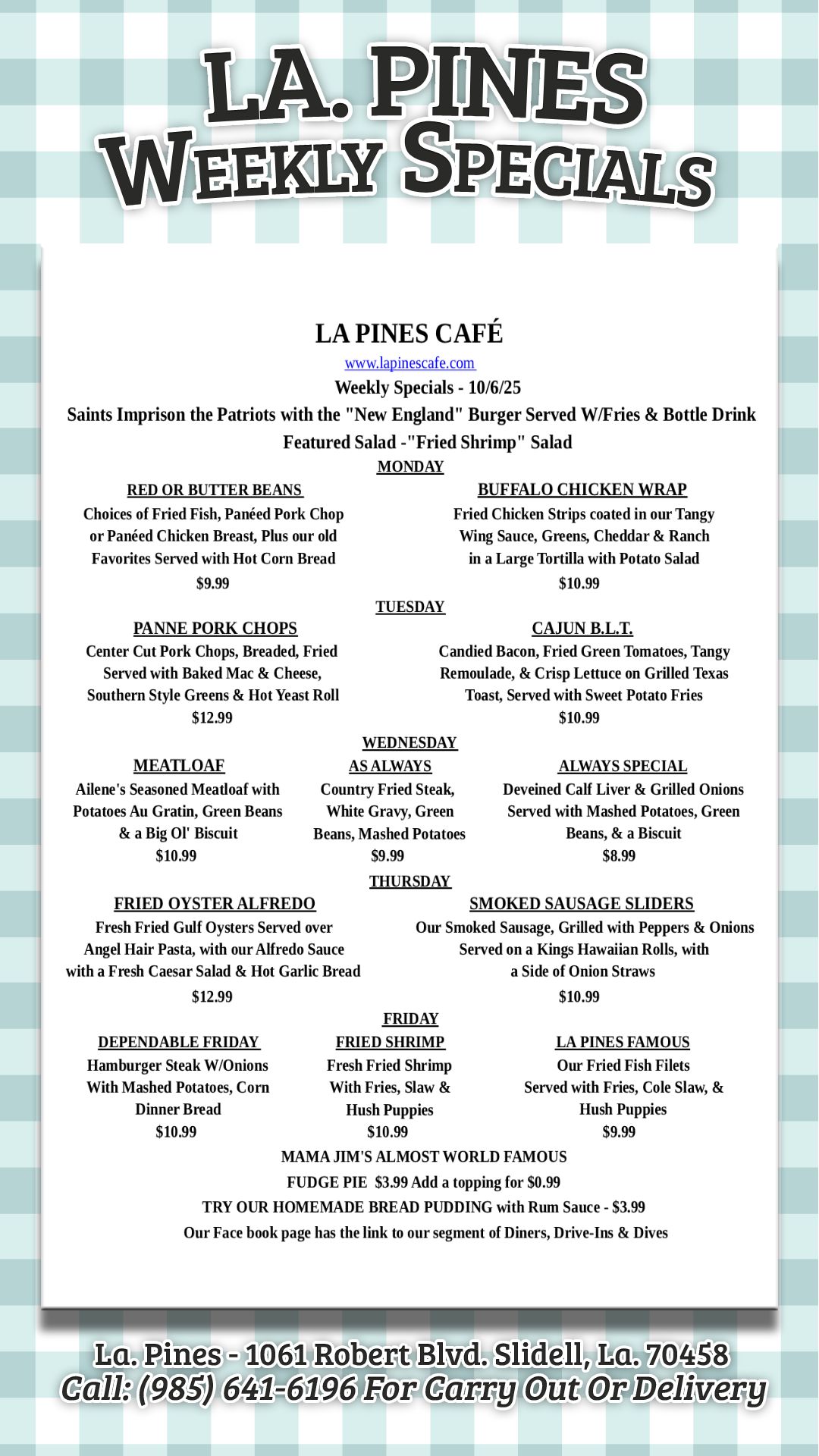 #LaPinesCafe #slidell #weeklyspecials #yummy #comfortfoodcomfortableprices